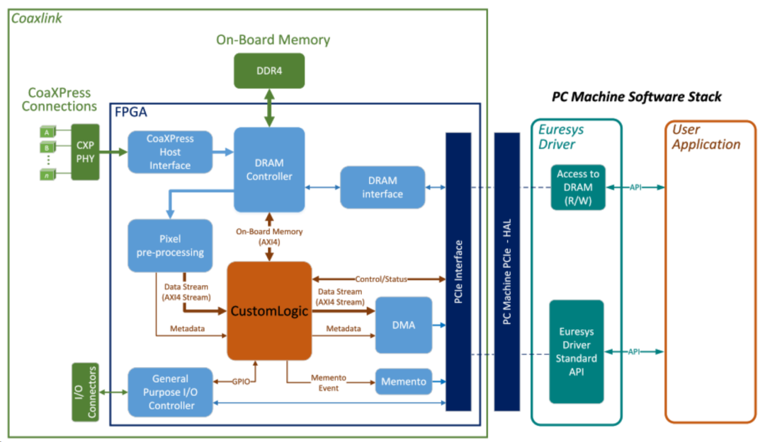 為了解決大容量數(shù)據(jù)的處理問(wèn)題,比利時(shí)的采集卡廠商Euresys推出了帶有CustomLogic功能的幾款圖像采集卡。