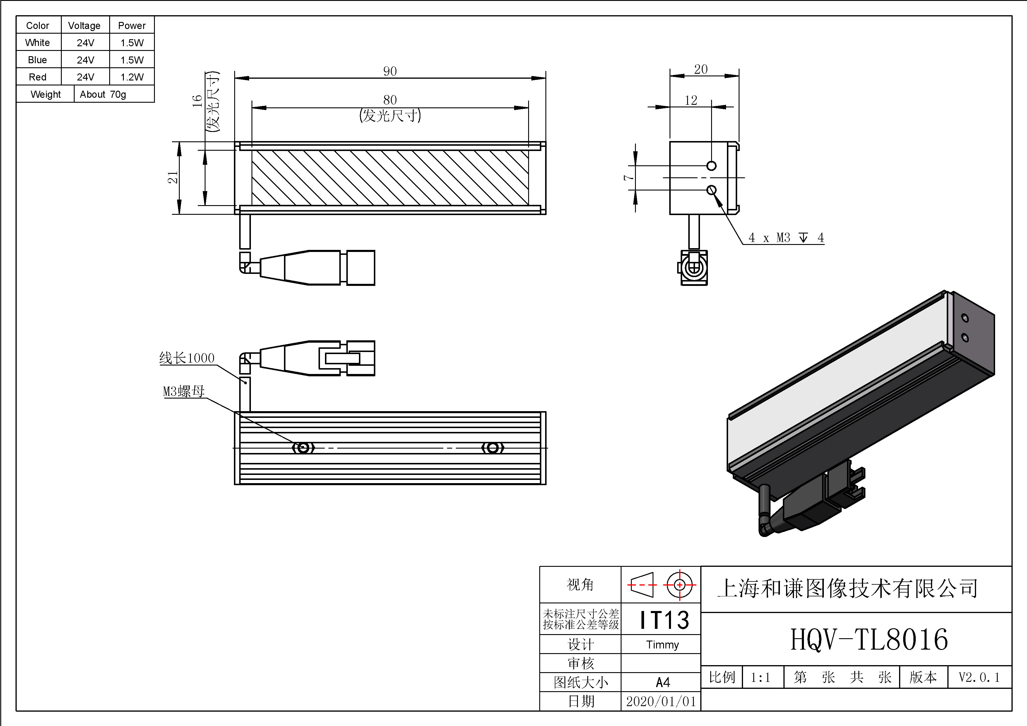 | 高均勻條形 | HQV-TL8030-R/G/B/W/IR/HW | 24V/4W | 24V/4W | 80×30mm |