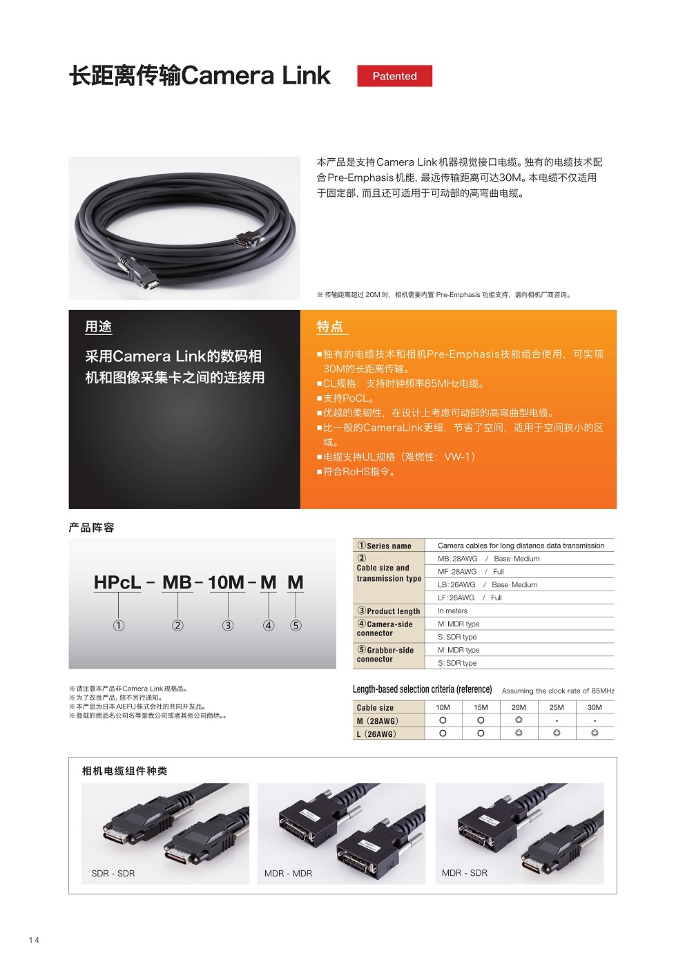 本產(chǎn)品是支持Camera Link機(jī)器視覺(jué)接口電纜。獨(dú)有的電纜技術(shù)配合Pre-Emphasis機(jī)能,最遠(yuǎn)傳輸距離可達(dá)30M。